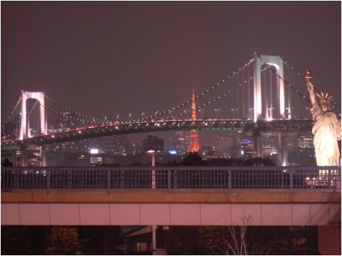 夜のレインボーブリッジ。デジカメですがそこそこきれいに撮れました。