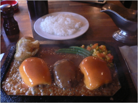 これでハンバーグ300gです。ほんとは1ポンド(450g)ハンバーグを食べたかったのですが、
