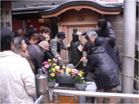 さて、今度は巣鴨へ到着。ここにはとげぬき地蔵と洗い観音さんがいます。