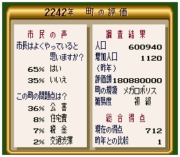 そして最後に街の評価。公害は仕方ないので、結構理想の街でしょうか。