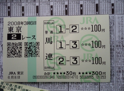 ↑ 東京2R 馬連1-3で8,150円GET!