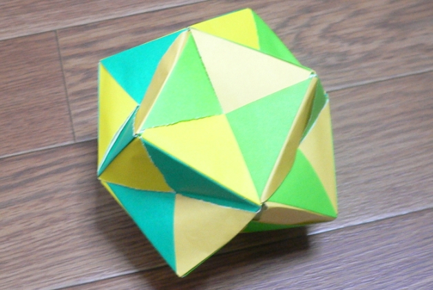 ↑12面体(24枚の折り紙で組み合わせたものです)
